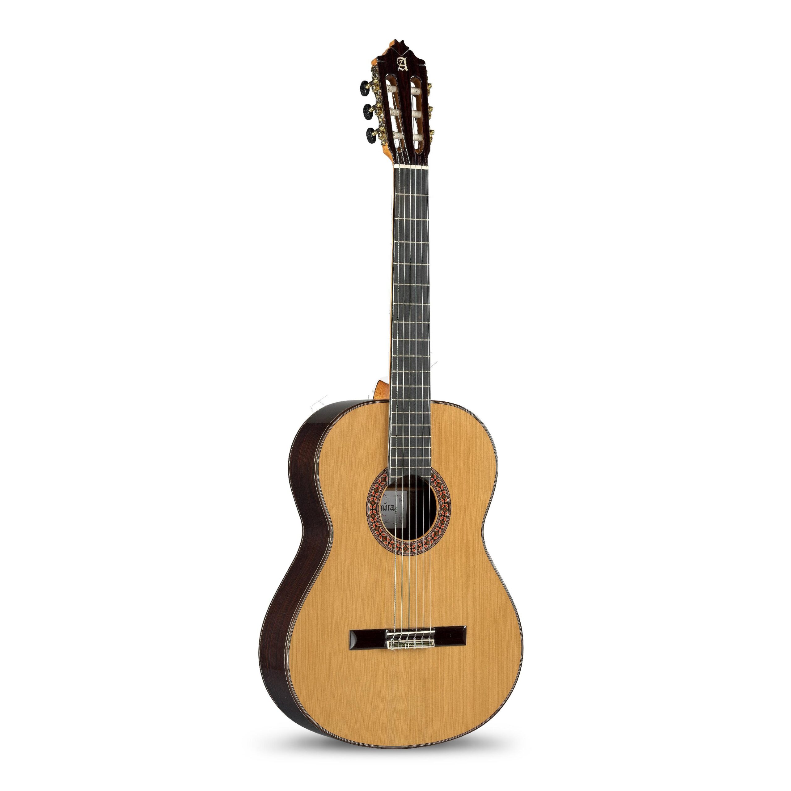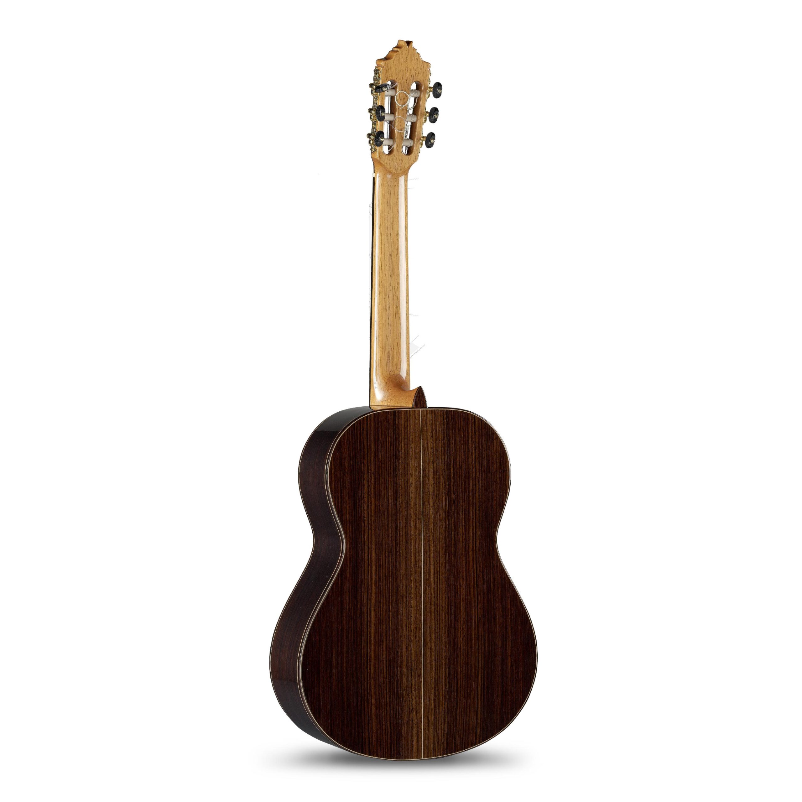 Wenn du das Modell 8P in deinen Händen hältst erkennst du sofort, dass diese Gitarre aus sehr hochwertige Materialien hergestellt wird. Die Hölzer sind eine Kombination aus roter Zeder an der Decke, und massiven Palisander an Zargen und Boden. Schenkt man dem Boden etwas Aufmerksamkeit erkennt man mit wie viel Sorgfalt und Liebe zum Detail Alhambra Ihre Gitarren baut, denn die symetrische Spiegelung des Holzes sucht Ihresgleichen.