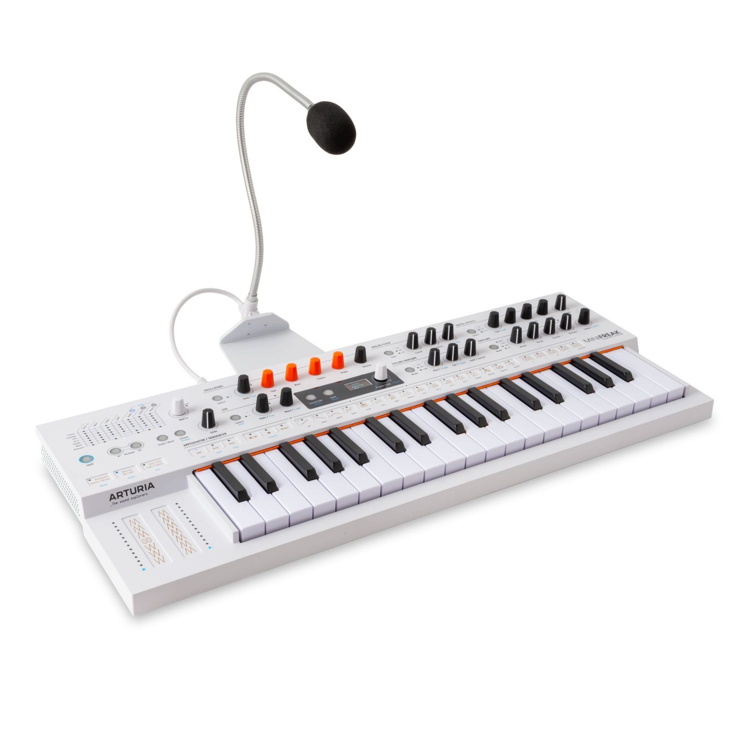 Der MiniFreak Vocoder ist eine Sonderausgabe des furchtlosen polyphonen Hybrid-Synthesizers. Mit denselben dualen digitalen Engines, analogen Filtern, Modulations- und Sequenzierungsfunktionen, jetzt zusätzlich mit Vocoder und Schwanenhalsmikrofon. Werden Sie kreativ mit Gesang oder externen Eingaben – von Talkbox-Growls bis hin zu spektralen Drones.