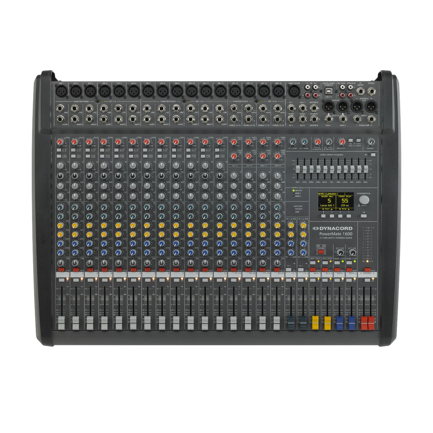 Intuitiv bedienbarer Mixerteil: 16 Eingangskanäle (12 Mic/Line, 4 Mic/Stereo-Line)