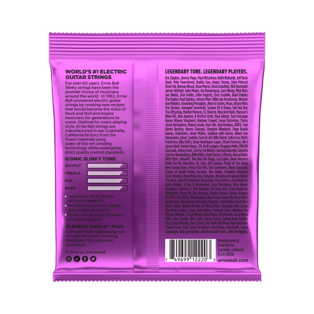 Ernie Ball Power Slinkys sind perfekt für alle, die fetten Rock and Roll- oder Bluesrhythmus lieben. Power Slinkys sind aufgrund der dickeren Saitenstärken die Favoriten von Slash, Metallica und Kenny Wayne Shepherd. Durch die dickeren Saiten liefern sie einen etwas kräftigeren Sound. Wie alle Ernie Ball Saiten werden auch diese unter höchstem Fertigungsstandard und strenger Kontrolle produziert, um gleichbleibend hohe Qualität, Beständigkeit und maximale Performance zu gewährleisten. Die Wound-Saiten bestehen aus einem mit Nickel plattierten Stahl, der um einen sechskantigen Stahldraht gewickelt ist. Die Plain-Saiten sind aus einem speziell gehärteten und mit Zinn überzogenem hochfesten Kohlenstoffstahl gefertigt.