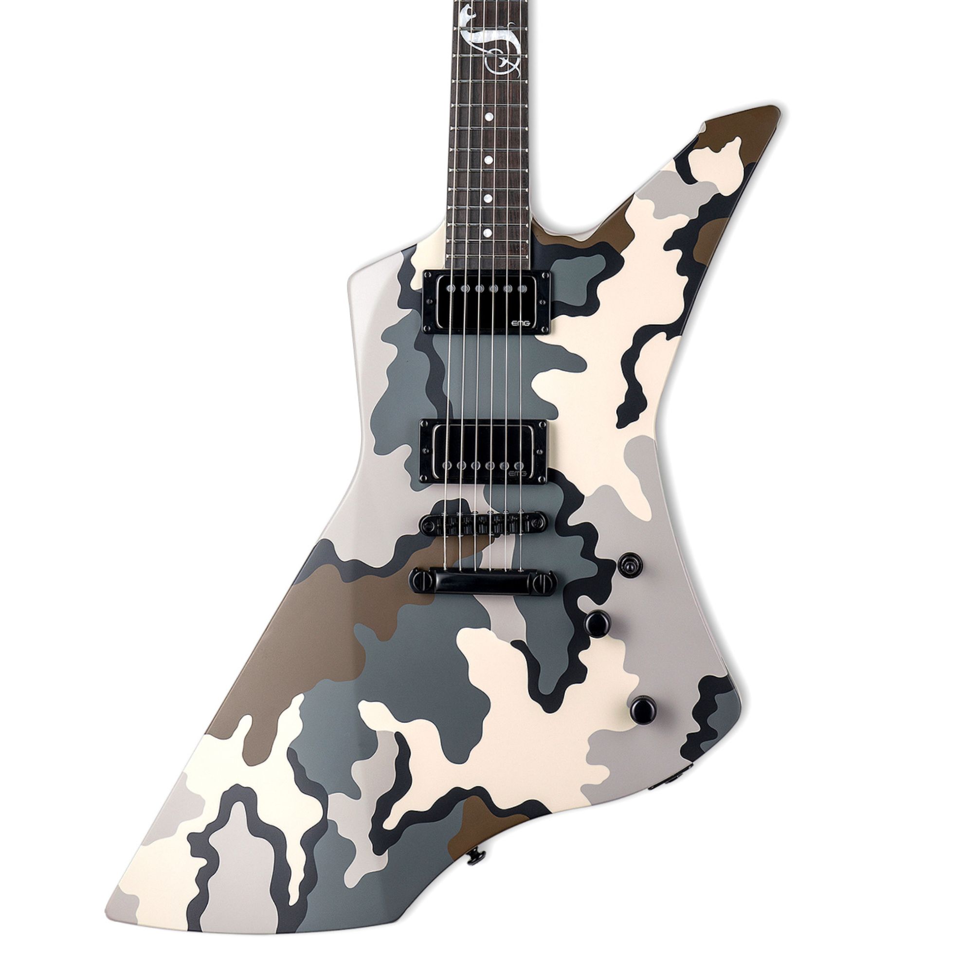 Ein absolutes Must Have für jeden Metallica Fan – die ikonische James Hetfield Snakebyte Camo ist nicht nur in jeder Hinsicht die richtige Gitarre für einen Shredder, sondern ist auch ein wahrhaftiger Hingucker. Während das exklusive Meisterwerk mit dem Tarnmuster des amerikanischen Jagdausstatters KUIU designed ist, sorgt sich das aktive EMG Het Set um den klassischen Metallica Sound, welcher die Ohren des Publikums mit einem authentischen und einzigartigen Stil und Ton verwöhnt.
