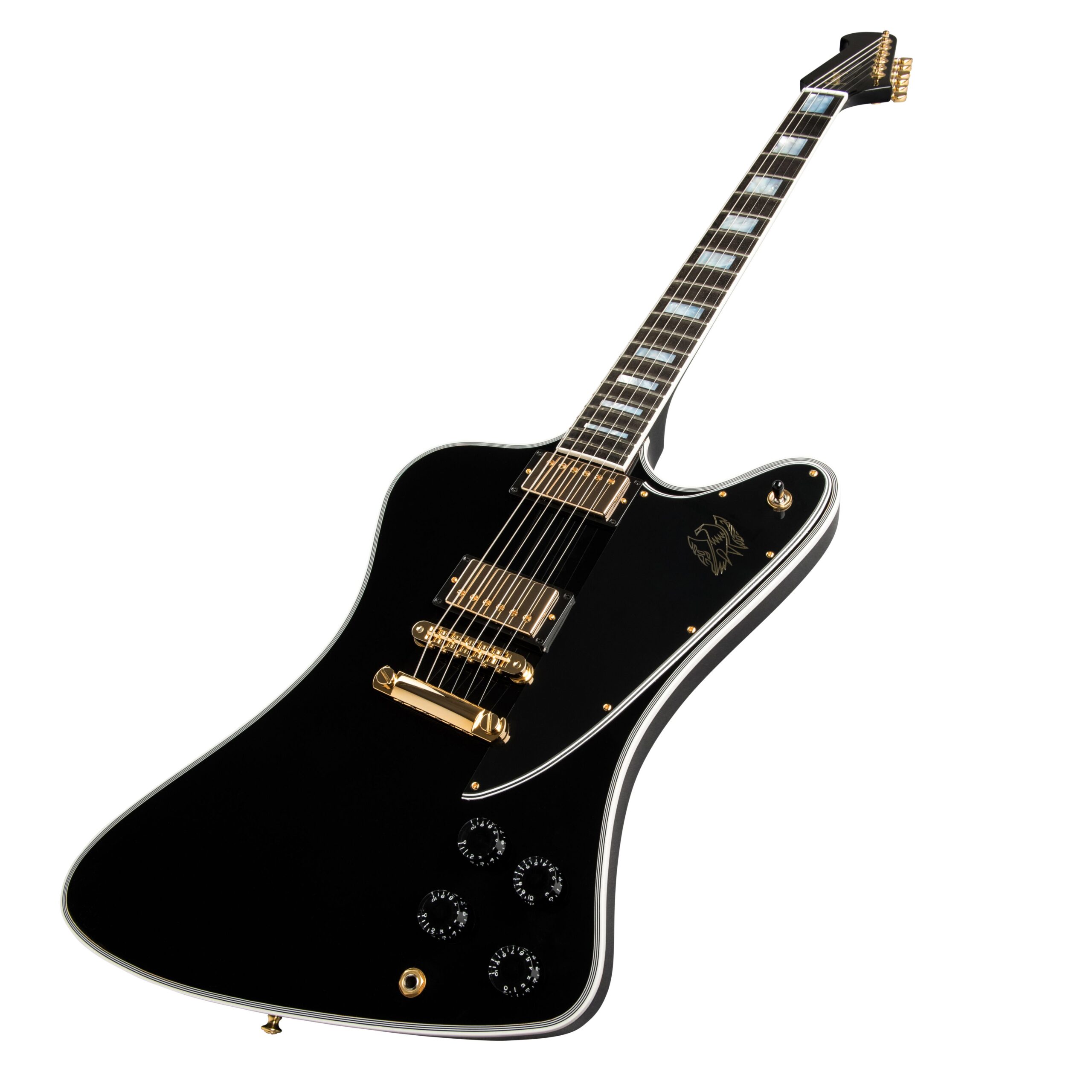 Diese Hochglanzversion der originalen “Reverse” Solid Body steigt nicht nur wie Phönix aus der Asche, sondern bringt auch den dazugehörigen schwarzen Rauch und das Feuer mit. Die prächtige, luxuriöse Ausstattung (Griffbrett aus massivem Ebenholz mit Block-Inlays aus Perlmutt – eine Reminiszenz an die ursprüngliche Firebird VII -, glänzend schwarzer Nitrocellulose-Lack, Stealth-Schlagbrett mit vergoldetem Firebird-Emblem, goldene Hardware der Spitzenklasse, elegantes Layered Binding, schwarze Speed-Knöpfe) und die klangstarke Elektronik (kraftvolle, leistungsstarke 490R und 498T Humbucker Tonabnehmer, die kehlige Mitten und scharfe Höhen liefern) verleihen dieser Blackbird Flügel. Der Korpus aus massivem Mahagoni und der Medium C-Hals vervollständigen die seltene Kombination aus ikonischem Stil und epischer Spielbarkeit.