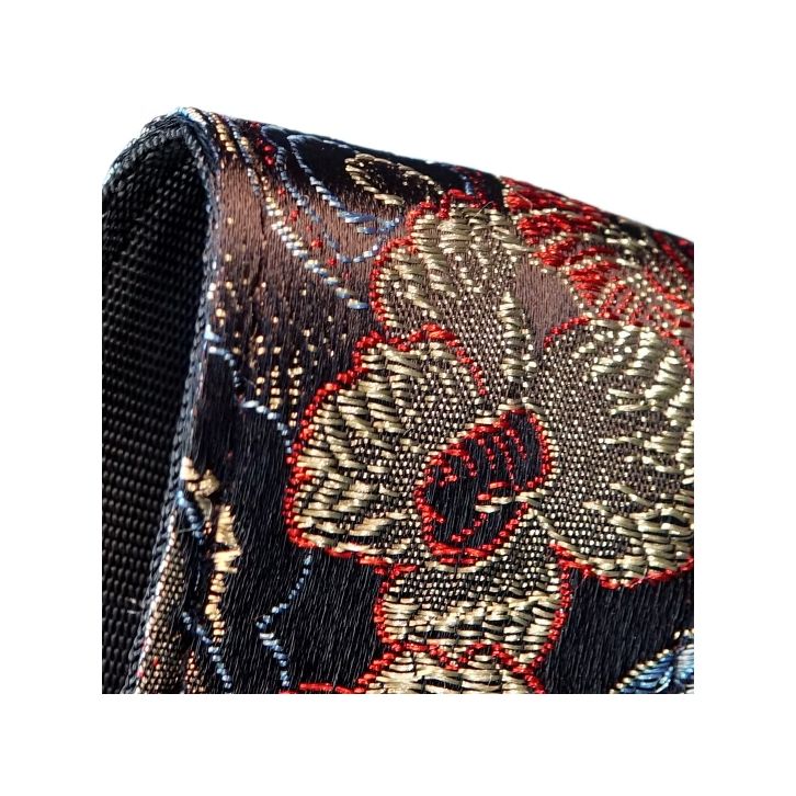 Außen: luxuriös, seidig schimmernder Brokatstoff mit feinen, dezent metallisch glänzenden Motiven.