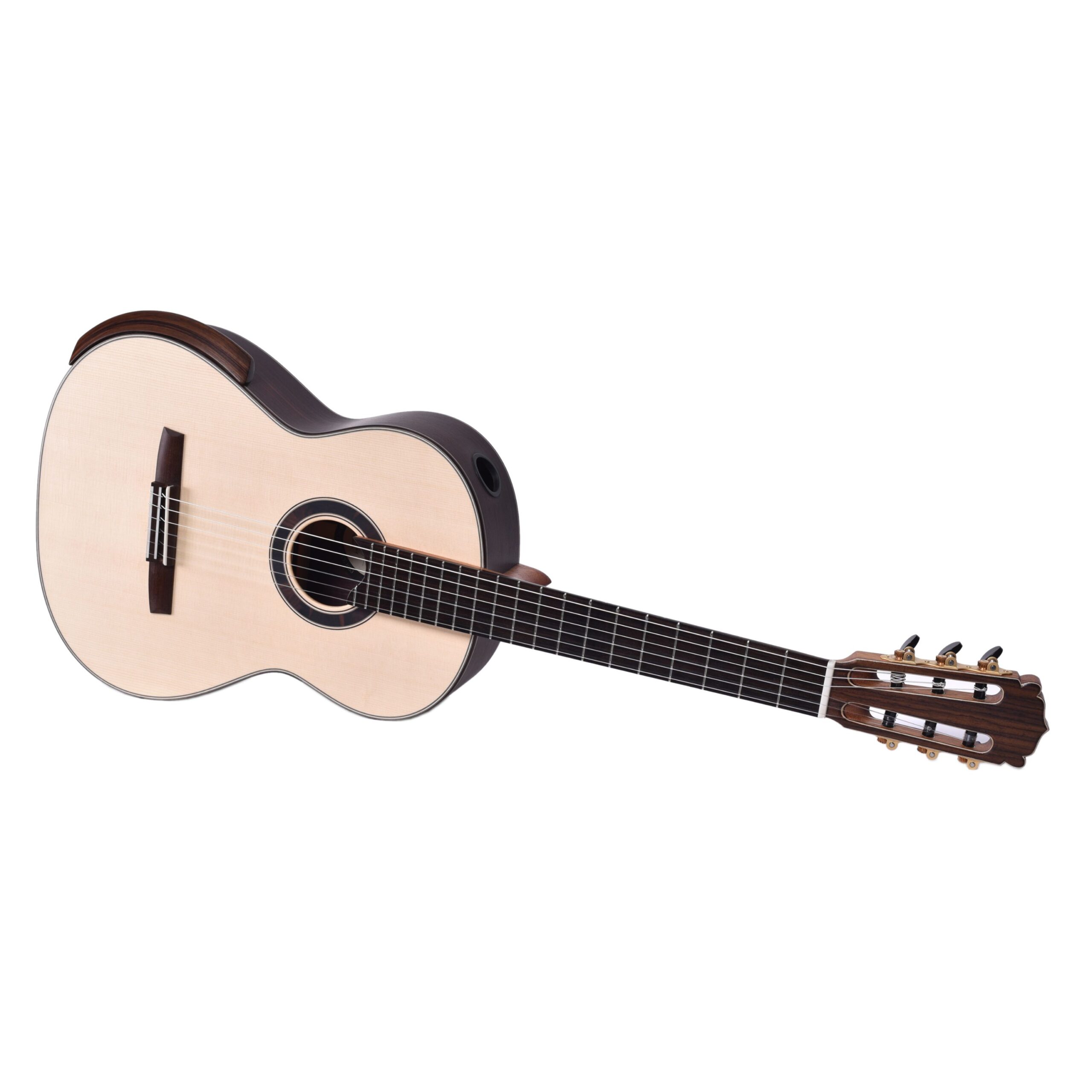 Mit der „elevated fingerboard” Konstruktion werden neue Maßstäbe gesetzt, sie ermöglicht leichteres Greifen in höheren Lagen und das Monitor Schallloch sorgt für eine bessere Eigenwahrnehmung. Mit den neuen Stegen wird ein deutliches niedrigeres Gewicht und eine geringere Dämpfung als Palisander erreicht. Die Armauflage sorgt für äußerst komfortables Spielen.