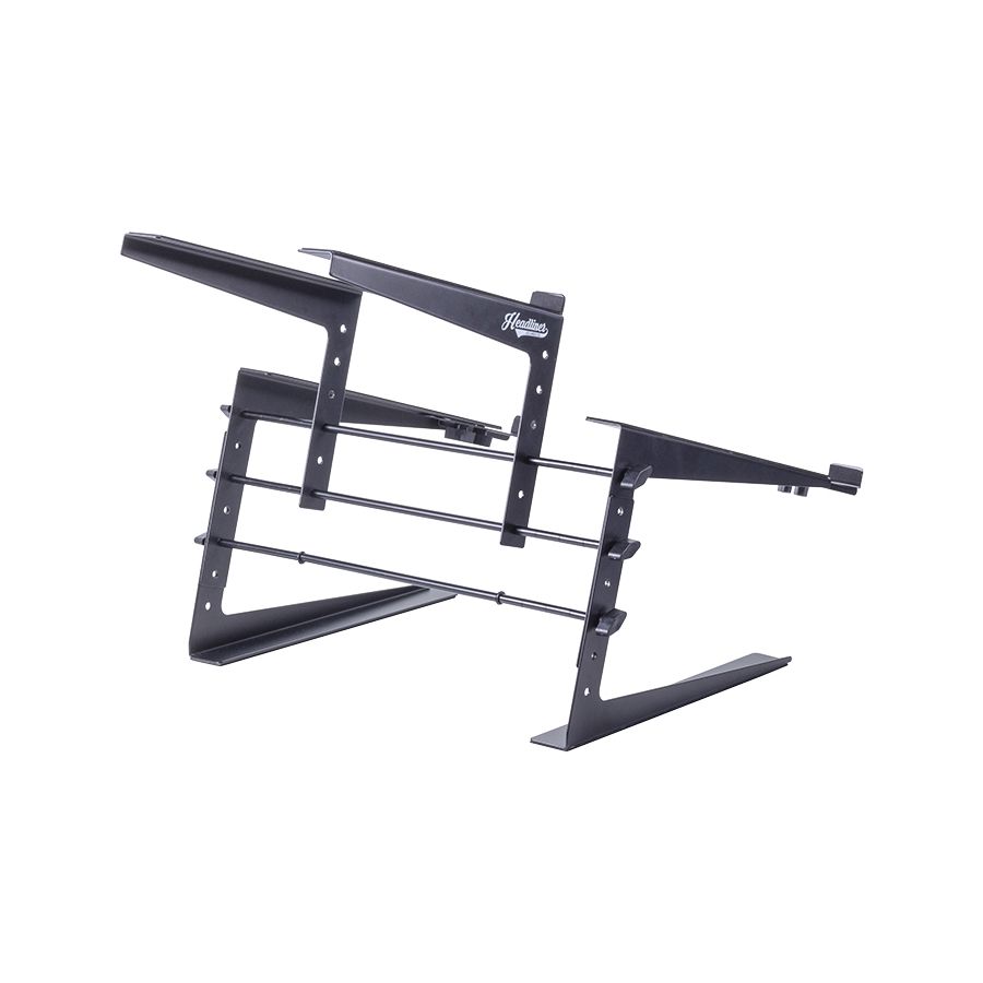 Stabiler Ständer für zwei Geräte, z. B. DJ-Controller und Laptop oder kleine Keyboards und Pad-Controller.