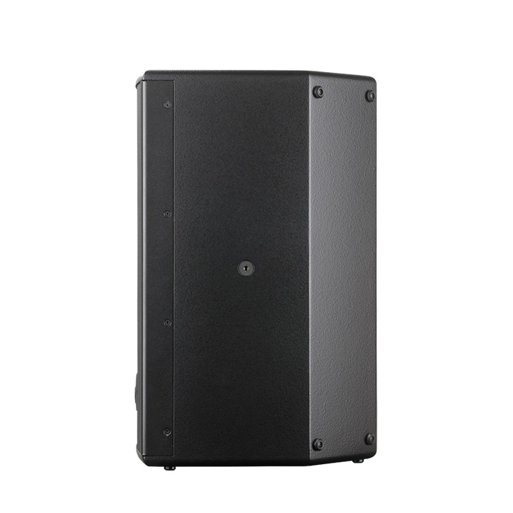 Kompaktes, asymmetrisches, trapezförmiges Gehäusedesign, das den Einsatz als Bühnenmonitor oder unter Balkonen ermöglicht