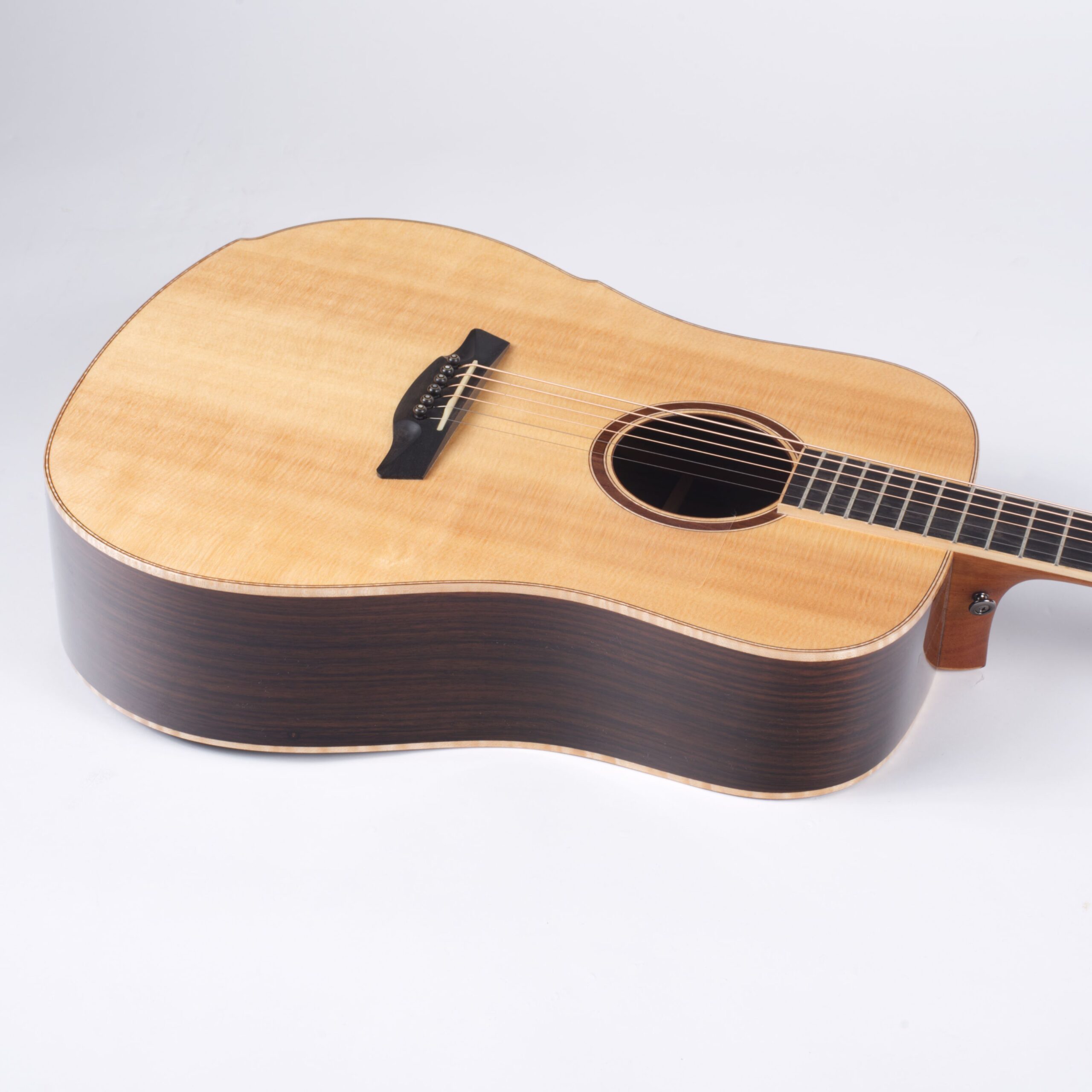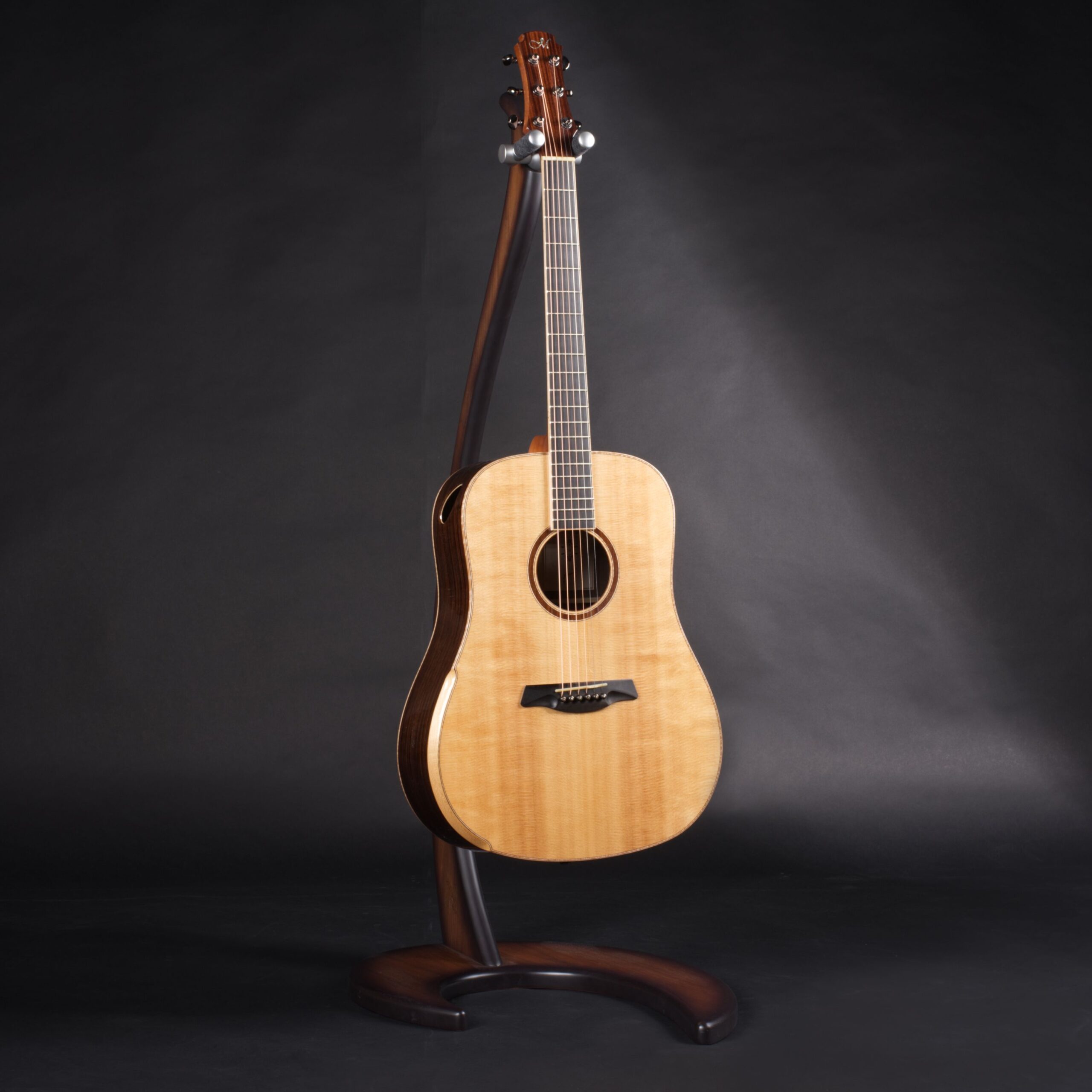 Hier gibt es natürlich keinen einheitlichen Standard, der für alle Instrumente kopiert wird; da jedes Stück Holz einzigartig ist, bestimmt dieser lebendige Werkstoff selbst seine Bearbeitung. Dieses individuelle Procedere des Abstimmens garantiert einen durchgängig ausgewogenen Klang mit angenehmer Transparenz, schneller Ansprache und eleganten Nuancen – eben die Eleganz, die sich auch in der modernen Optik von Maestro Gitarren widerspiegelt.