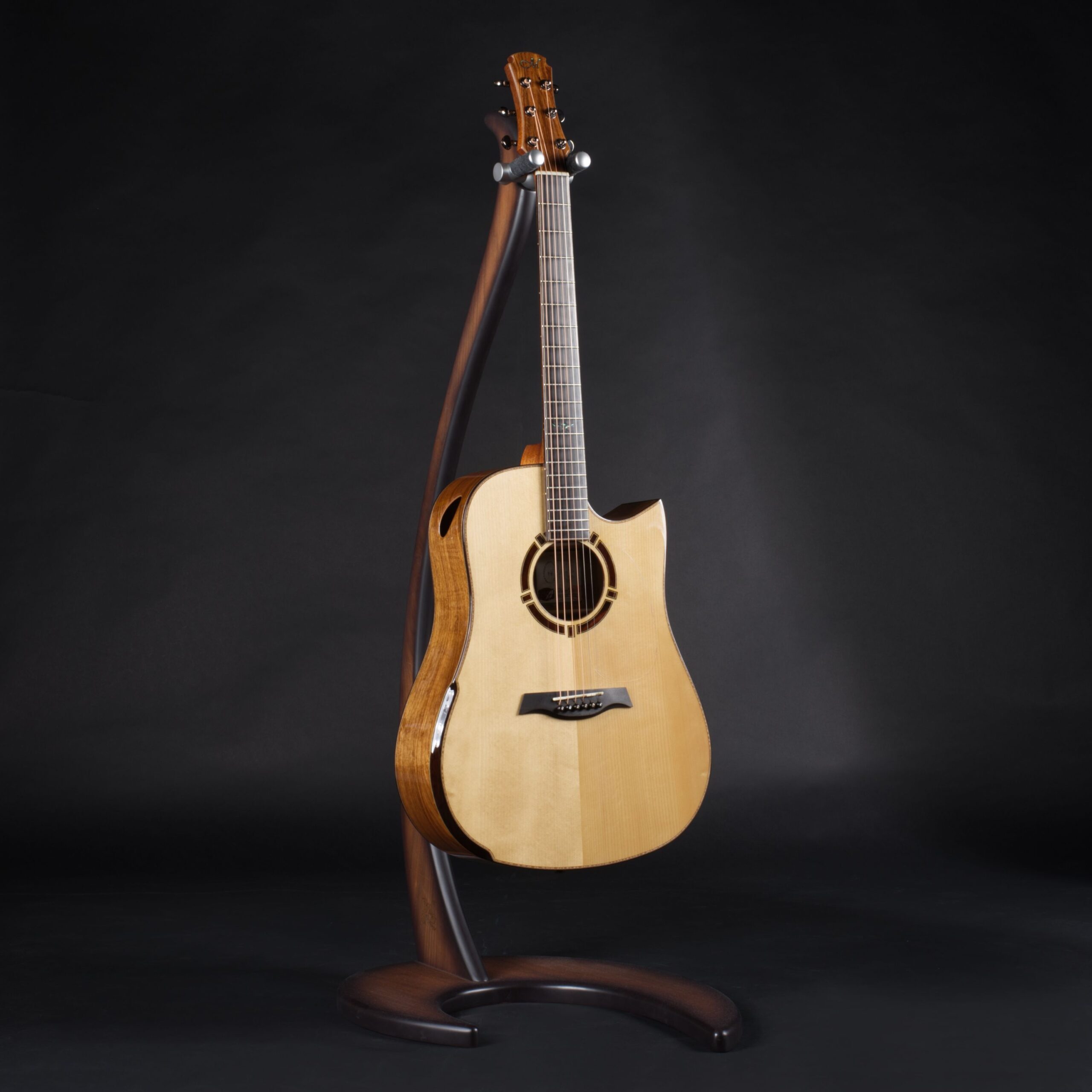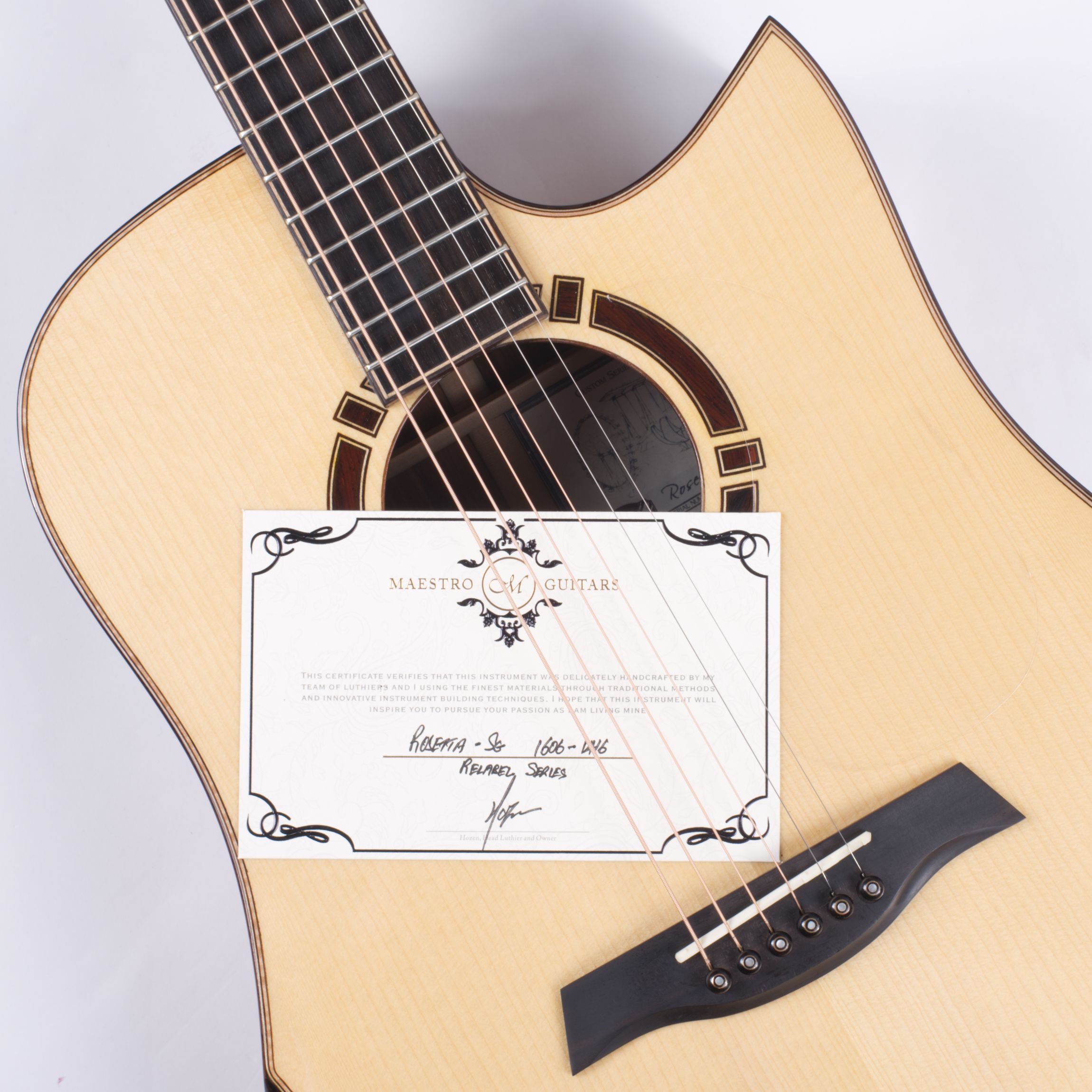 Hier gibt es natürlich keinen einheitlichen Standard, der für alle Instrumente kopiert wird; da jedes Stück Holz einzigartig ist, bestimmt dieser lebendige Werkstoff selbst seine Bearbeitung. Dieses individuelle Procedere des Abstimmens garantiert einen durchgängig ausgewogenen Klang mit angenehmer Transparenz, schneller Ansprache und eleganten Nuancen – eben die Eleganz, die sich auch in der modernen Optik von Maestro Gitarren widerspiegelt.