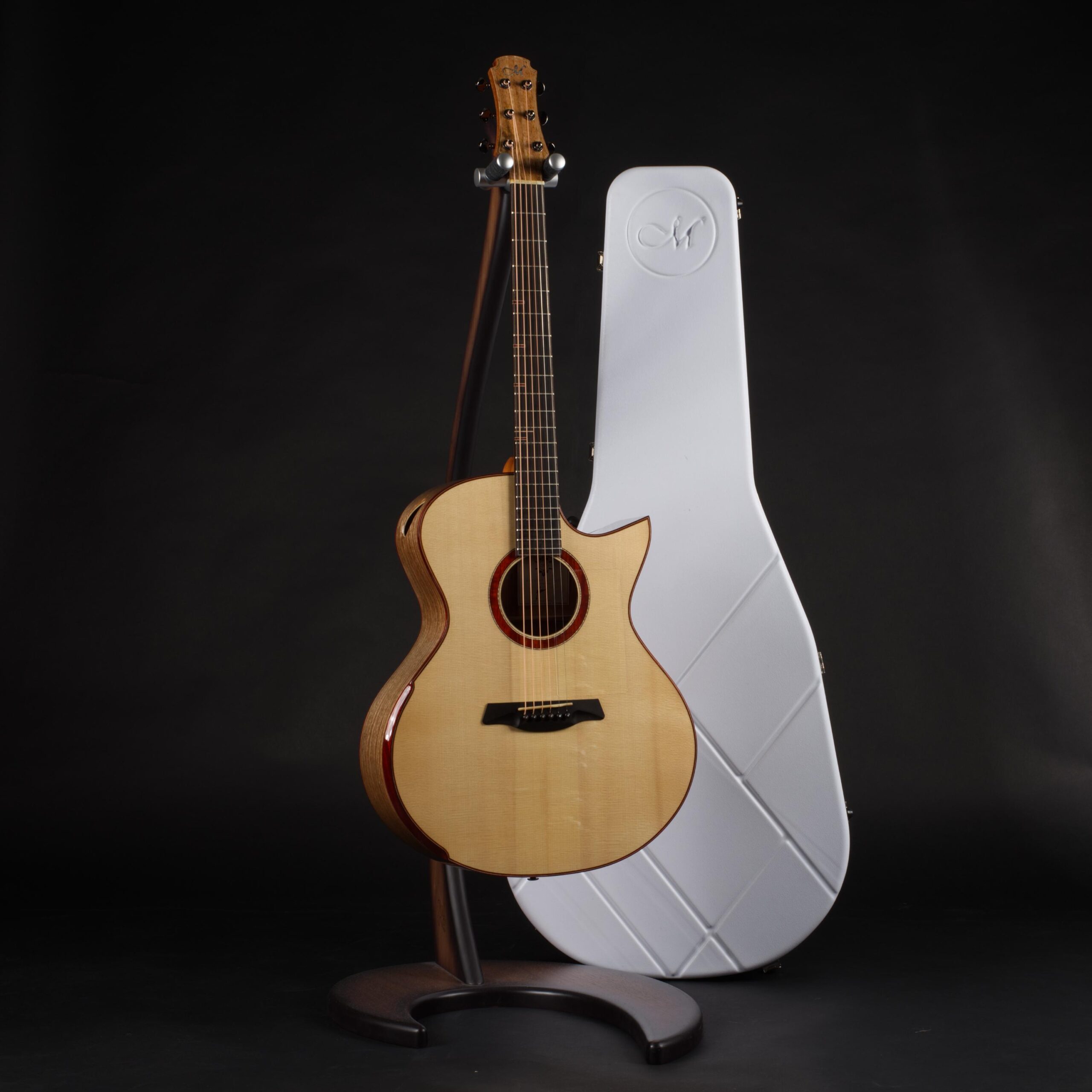 Hier gibt es natürlich keinen einheitlichen Standard, der für alle Instrumente kopiert wird; da jedes Stück Holz einzigartig ist, bestimmt dieser lebendige Werkstoff selbst seine Bearbeitung. Dieses individuelle Procedere des Abstimmens garantiert einen durchgängig ausgewogenen Klang mit angenehmer Transparenz, schneller Ansprache und eleganten Nuancen – eben die Eleganz, die sich auch in der modernen Optik von Maestro Gitarren widerspiegelt.