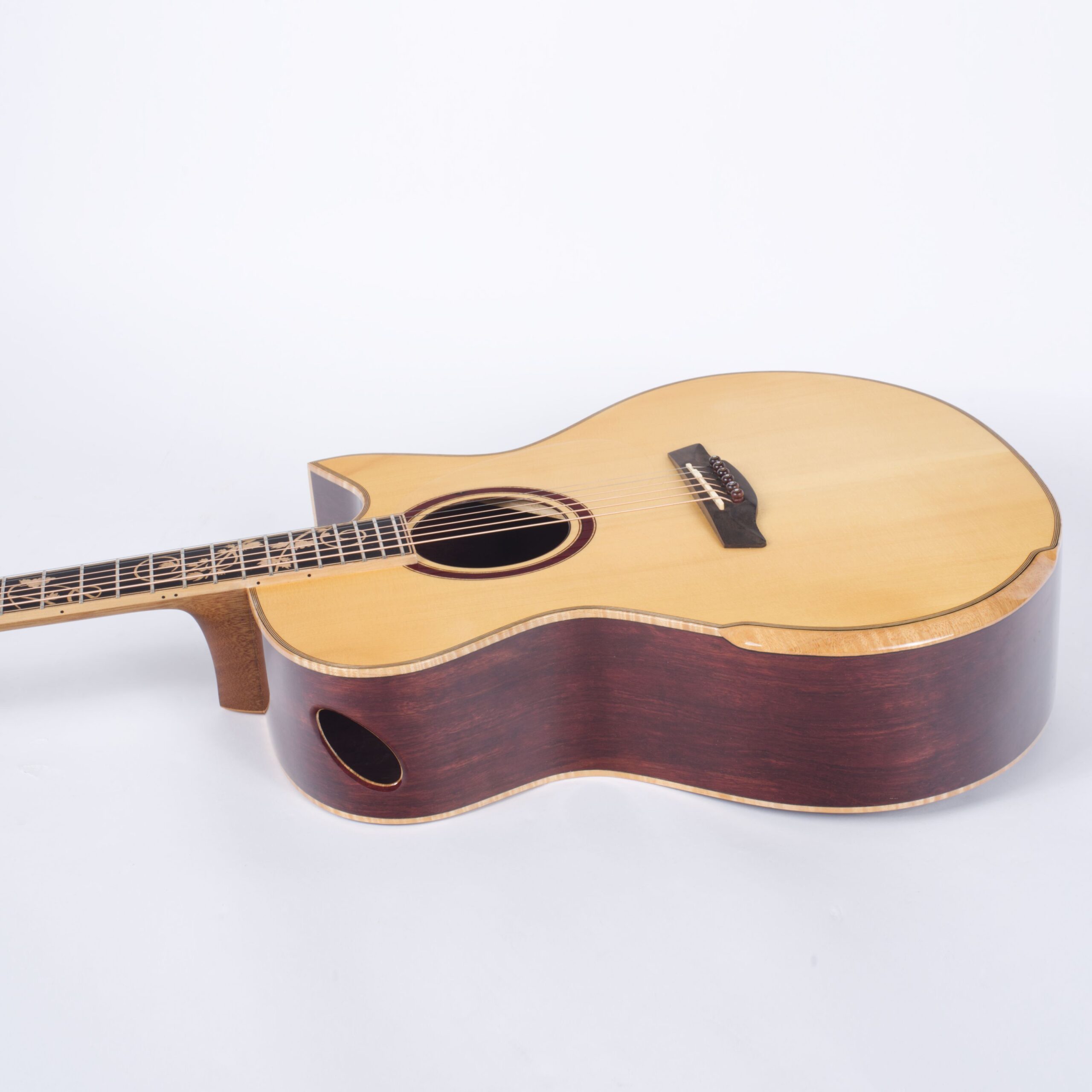 Hier gibt es natürlich keinen einheitlichen Standard, der für alle Instrumente kopiert wird; da jedes Stück Holz einzigartig ist, bestimmt dieser lebendige Werkstoff selbst seine Bearbeitung. Dieses individuelle Procedere des Abstimmens garantiert einen durchgängig ausgewogenen Klang mit angenehmer Transparenz, schneller Ansprache und eleganten Nuancen – eben die Eleganz, die sich auch in der modernen Optik von Maestro Gitarren wiederspiegelt.