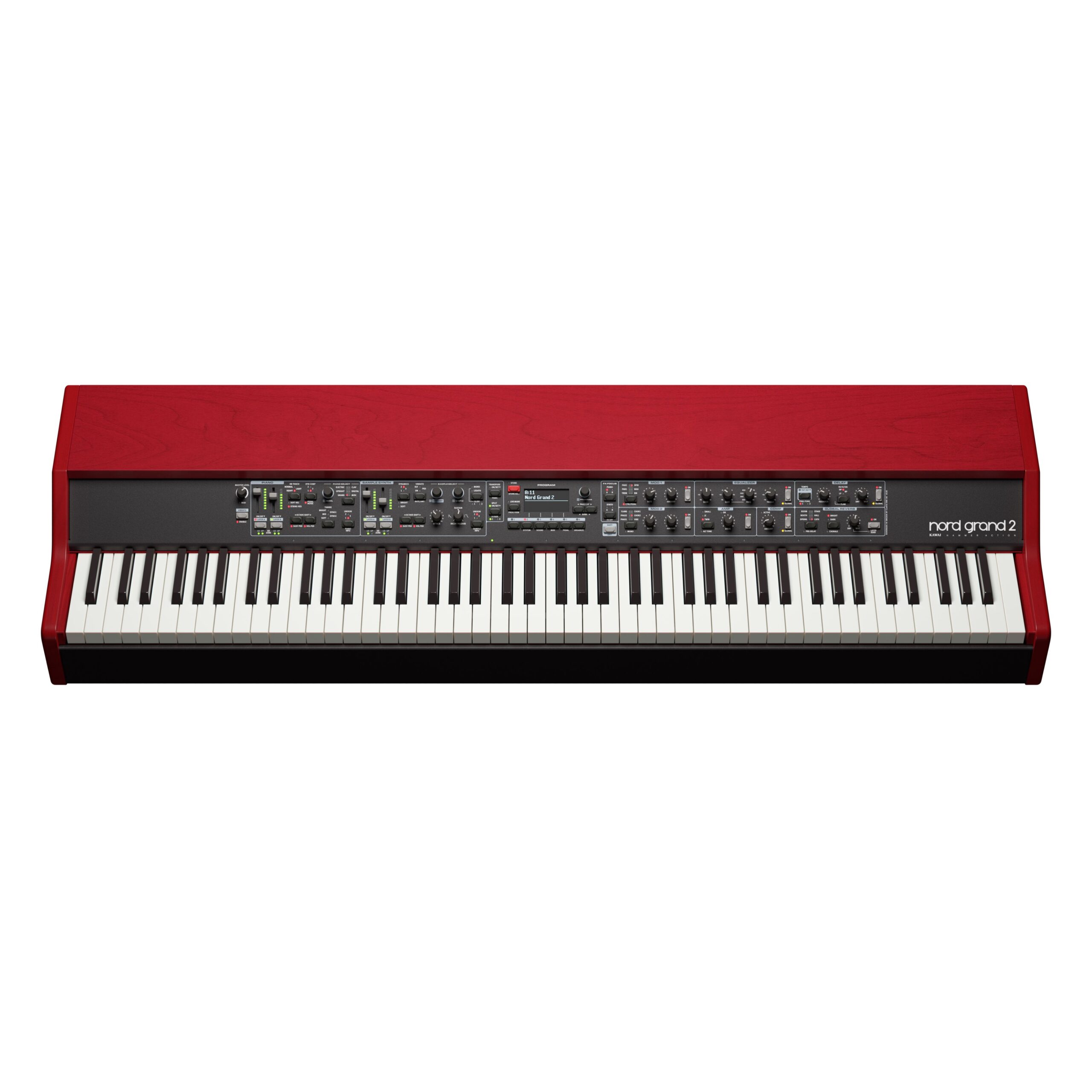 Das Nord Grand 2 ist mit der neuesten gewichteten Tastatur von Kawai ausgestattet. Durch die Kombination des Spielgefühls eines akustischen Flügels mit der renommierteren Piano Sample Library von Clavia und einer klar strukturierten, einfach zu verstehenden Benutzeroberfläche bietet das elegante Nord Grand 2 ein einzigartiges Spielerlebnis.