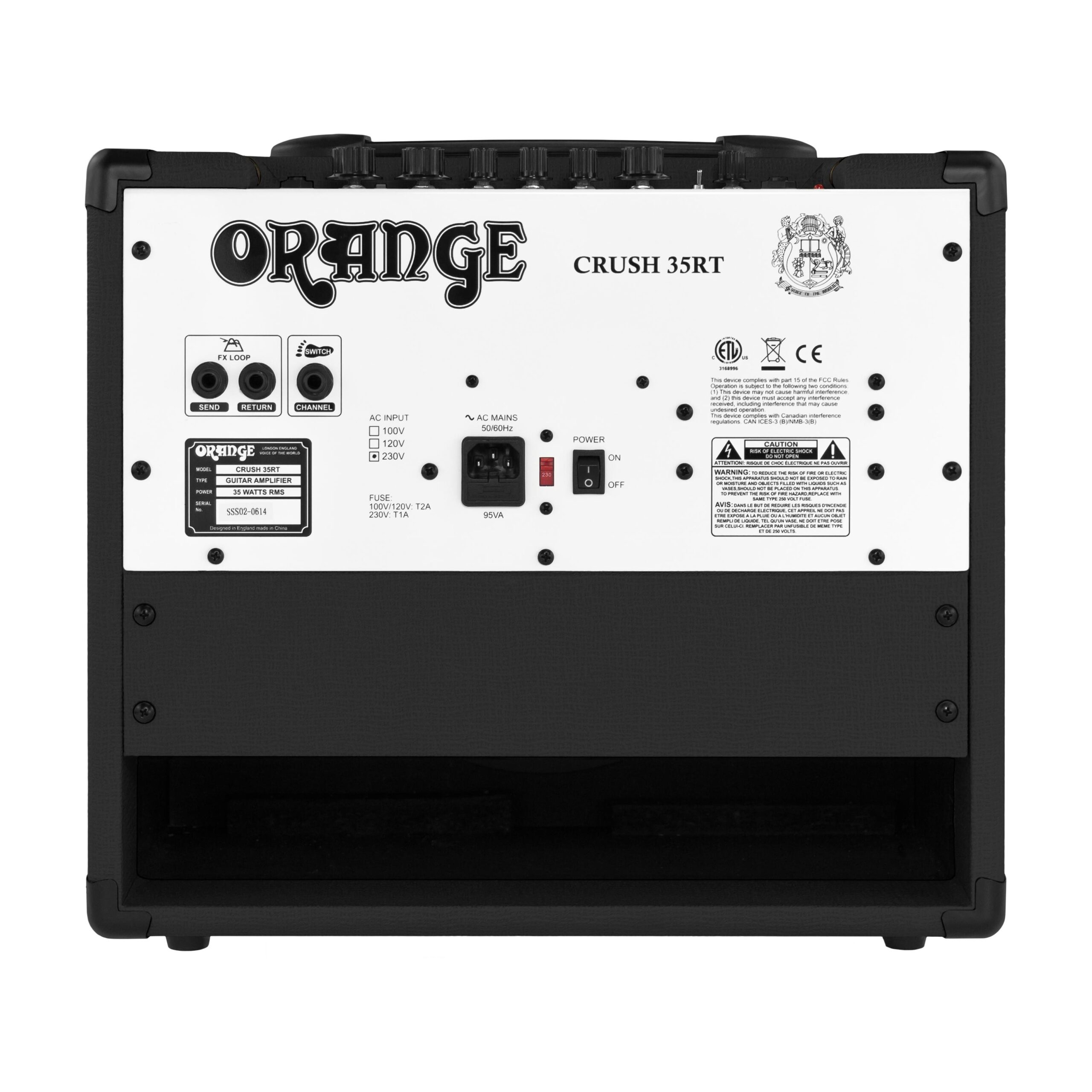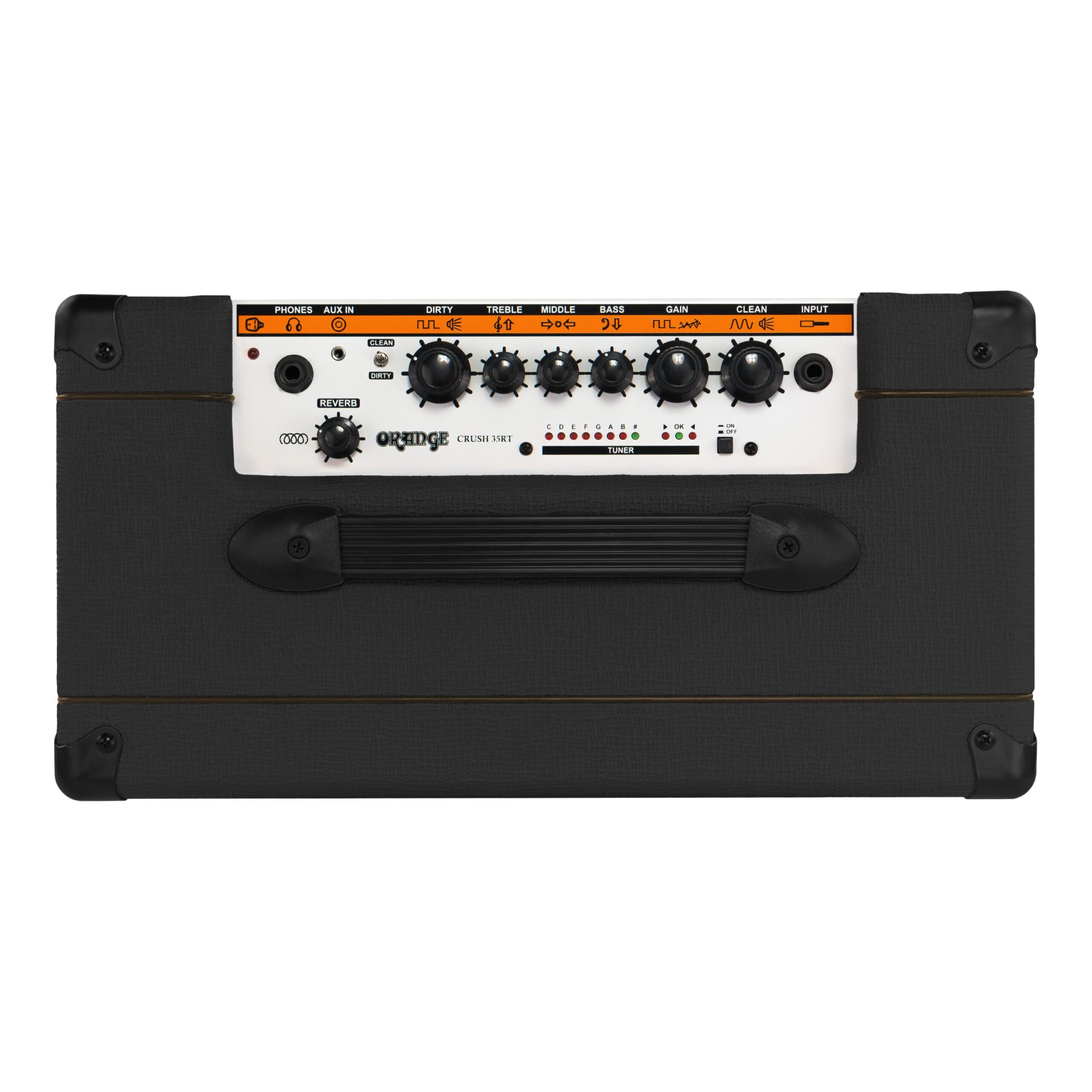 Der Crush 35RT ist das größte und funktionsreichste Modell der Crush Reihe. Orange‘s neuer zweikanaliger Preamp mit hoher Verstärkung, der mit einer kräftigeren 35 Watt Ausgangsstufe und einem 10“ Voice of the World Lautsprecher gekoppelt ist, liefert erstaunliche Ergebnisse und liefert noch mehr Punch, Präsenz und Lautstärke. Neben dem integrierten Hall und einem integrierten chromatischen Tuner verfügt der Crush 35RT auch über einen Aux In für Backing Tracks und einen mit CabSim geladenen Kopfhörerausgang.