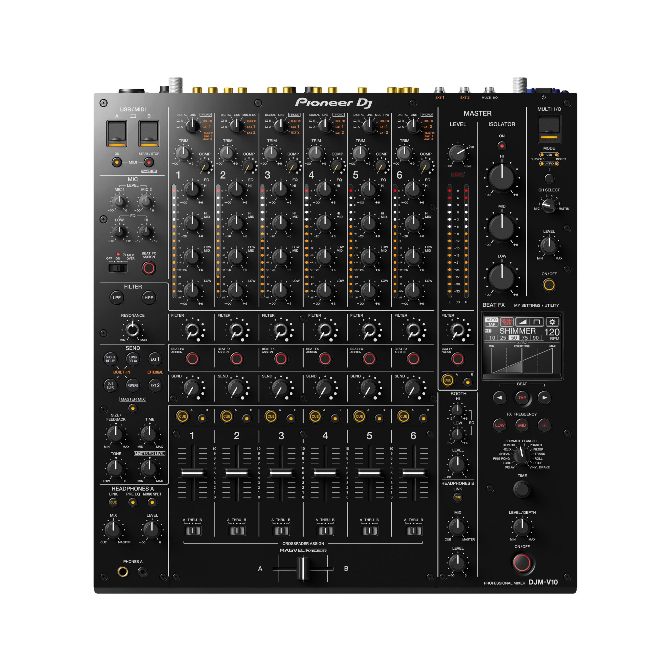Schmieden Sie mit dem DJM-V10 einen neuen Sound. Eine neue Art von Mixer, geboren aus neuem Denken. Es wurde entwickelt, um den kreativsten DJs die Erstellung origineller Soundscapes zu ermöglichen.
