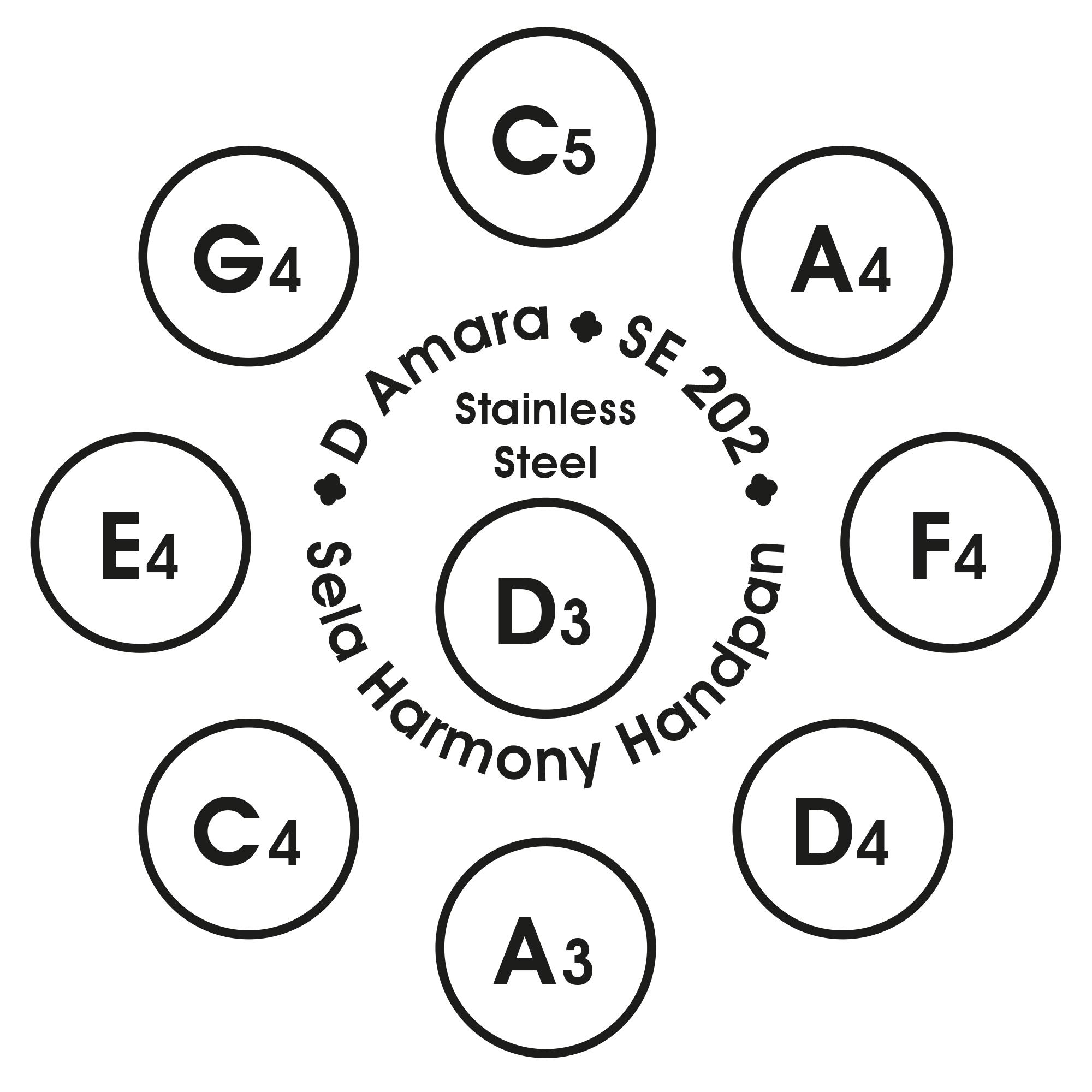 Die Sela Harmony Handpan ist professionell und perfekt gestimmt. Sie besticht durch Qualität und Klang auf höchstem Niveau. Die Handpan hat eine optimale Resonanzschwingung über alle Töne hinweg. Störende metallische Klänge entstehen beim Spielen nicht. Die Töne sind hell und langanhaltend. Das Nachklingen der einzelnen Töne wird durch den Edelstahl noch verstärkt.