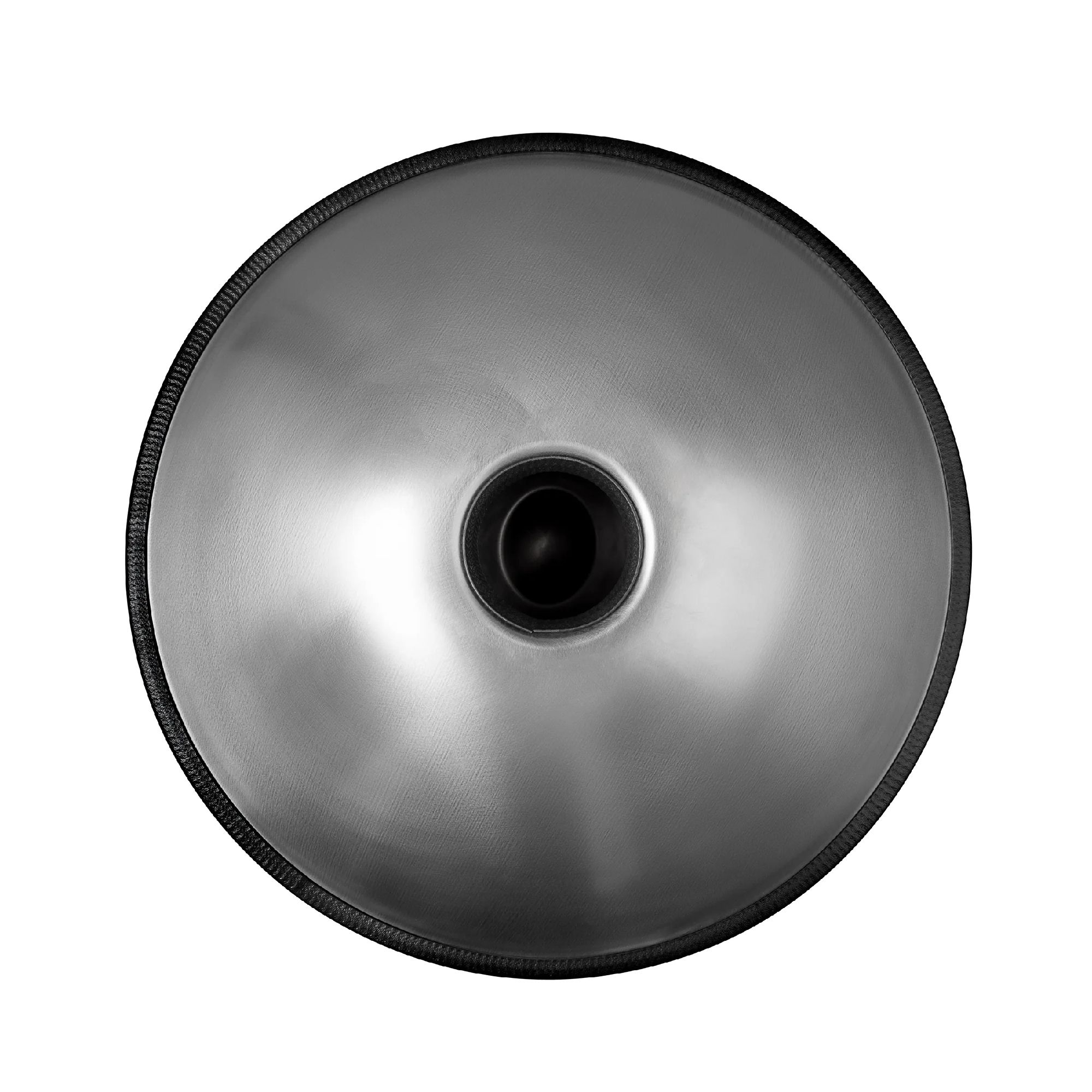 Die Handpan ist die perfekte Kombination aus Percussions- und Melodieinstrument. Sie besteht aus zwei zusammengesetzten Stahlschüsseln. Die Schalen aus Metall werden in einem speziellen Verfahren gehärtet (nitriert). Dadurch erhält das Instrument seine Struktur. Im Rahmen ihres Herstellungsprozesses werden die Hälften anschließend per Hand aufwändig gehämmert. So entstehen Dellen und ein kleiner Hügel in der Mitte des Korpus. Diese Flächen werden zu den verschiedenen Klangfeldern. Die Zentralnote liegt in der Mitte und ist von einem Kreis mit acht weiteren Tönen umgeben.