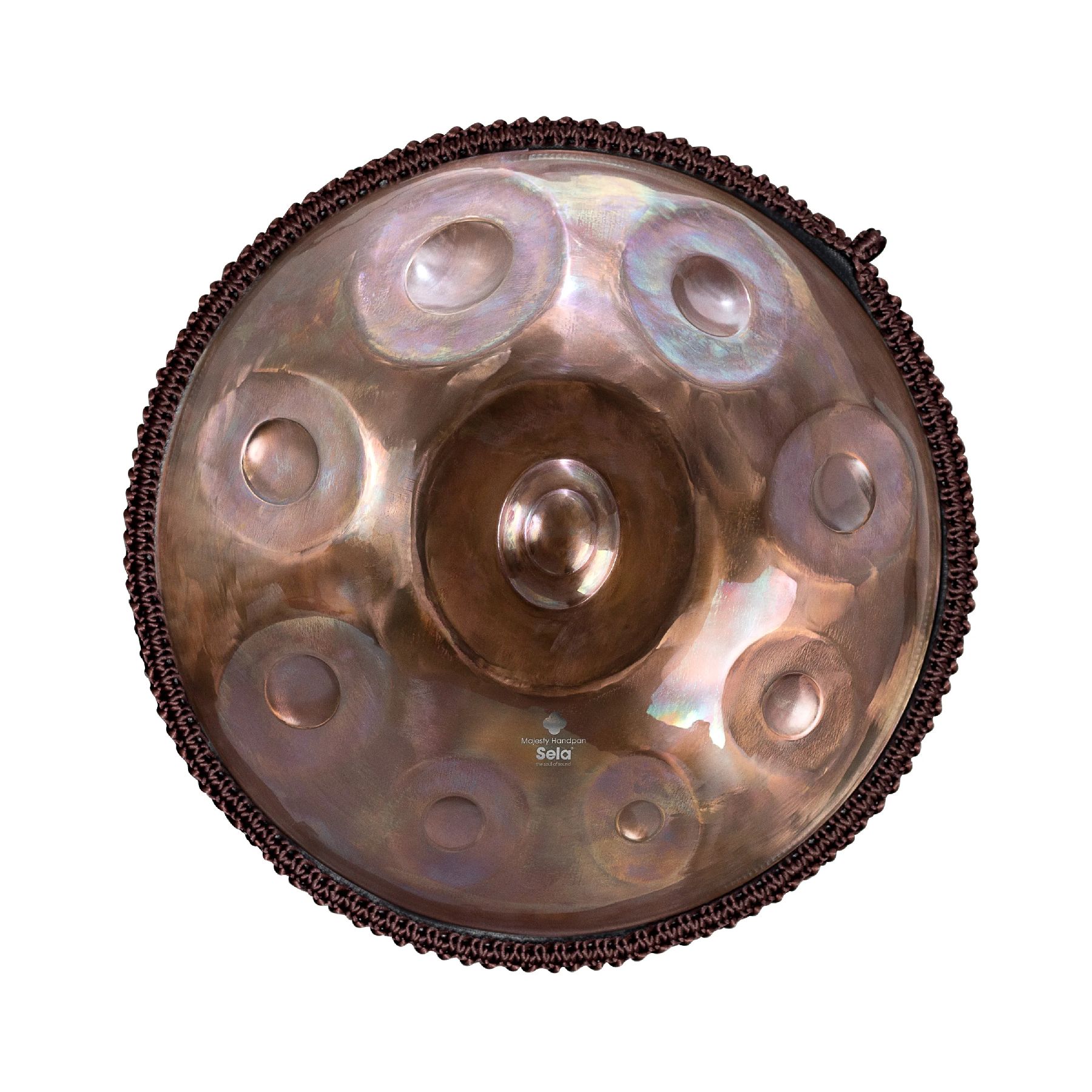 Sela Majesty Stainless Steel Handpans bestehen aus hochwertigstem Edelstahl und werden von einigen der besten Handpanbauern der Welt komplett in Handarbeit gefertigt und aufwändig gestimmt. Sie klingen damit nochmals besser als unsere beliebten Harmony Stainless Steel Modelle. Handpans aus Stainless Steel haben ein deutlich längeres Sustain als nitrierte Handpans und eignen sich damit insbesondere für ein langsames, entspannendes und meditatives Spiel. Gleichzeitig sind sie sehr pflegeleicht. Sela Majesty Stainless Steel Handpans besitzen ein glänzendes, bronzefarbenes Finish, das für einen sehr edlen, hochwertigen und gleichzeitig geheimnisvollen Look sorgt. Jedes Modell der Majesty Serie wird zudem mit einem Handpan-Rope ausgeliefert. Das dekorative Band schützt den Rand der Handpan und verleiht ihr außerdem ein individuelles Aussehen.