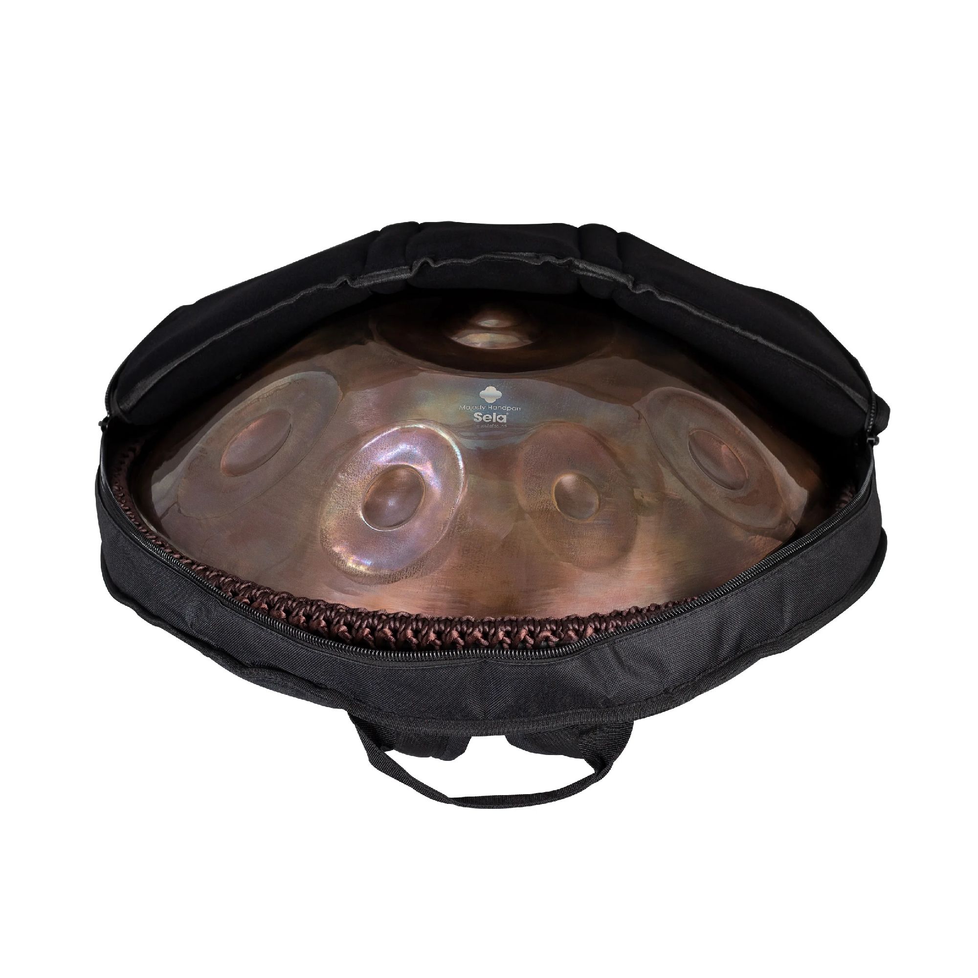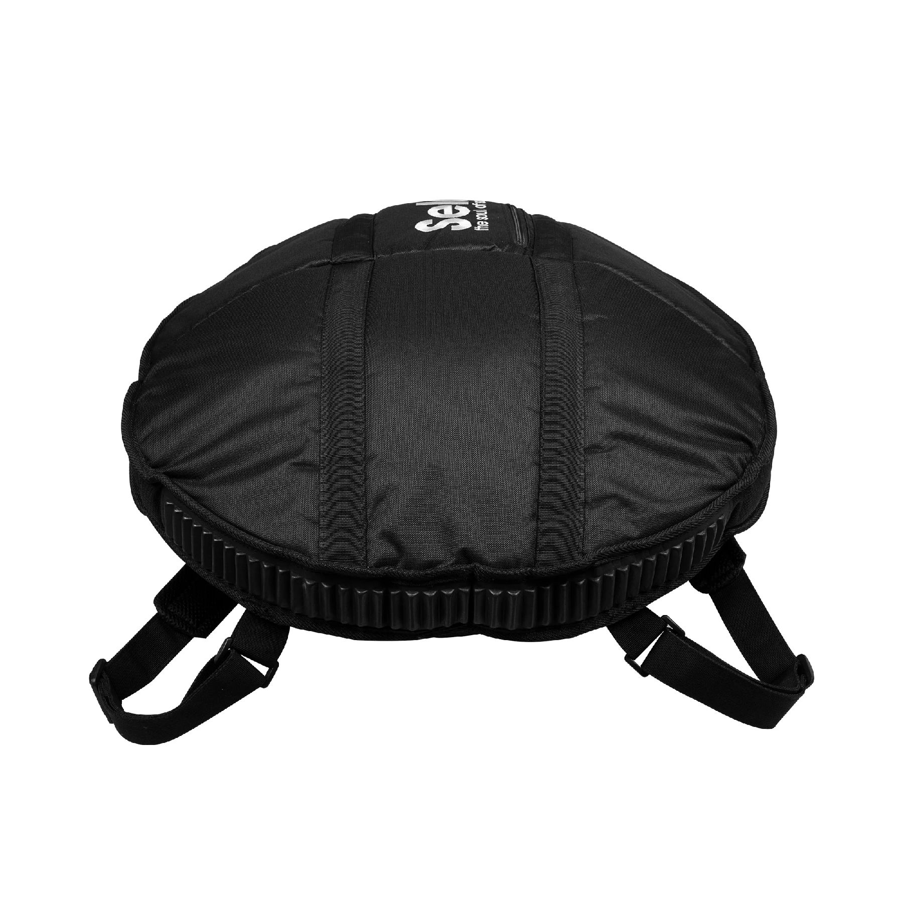 Jede Sela Handpan wird mit einer Tasche aus reißfestem Nylongewebe ausgeliefert, die dank ihrer guten Fütterung für optimalen Schutz beim Transport sorgt. Sie lässt sich wahlweise mit Hilfe der zwei Griffe per Hand oder durch verstellbare Schultergurte auch komfortabel als Rucksack tragen. Ein praktisches Außenfach bietet genug Platz für kleine Zubehörartikel wie ein Metronom.