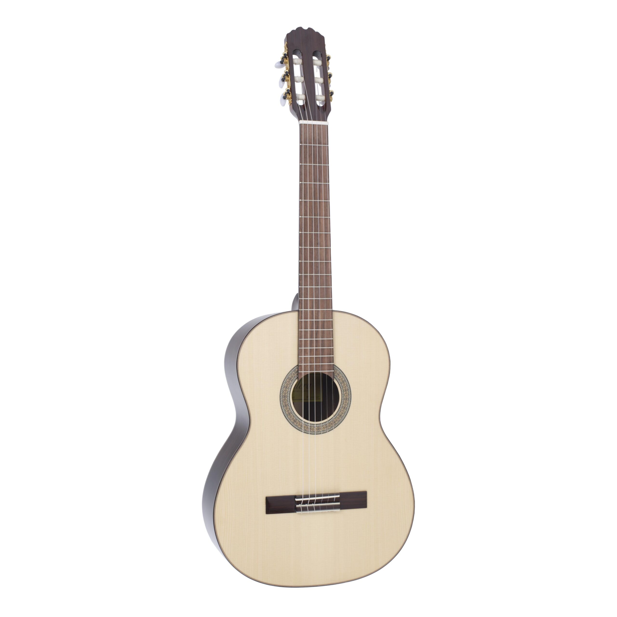 Die vollmassive Fichtendecke sorgt nicht nur für Stabilität, sie ist zudem verantwortlich für die brilliante, helle Klangfarbe. Qualitätsmerkmale sind zudem das Palisander Griffbrett, Sattel und Stegeinlage aus Knochen und hochwertige Saiten von Savarez.